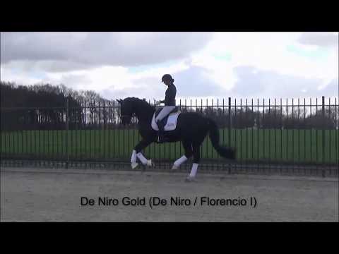 De Niro Gold zaujme nejen svým šarmem, ale také vynikajícím exteriérem. Tři vynikající základní chody jej jasně předurčují pro drezurní kariéru. Imponující je také jeho jisté a ochotné vystupování doplněné maximálním přirozeným citem pro rovnováhu. V roce 2016 absolvoval De Niro Gold 14denní test v Neustadt (Dosse), v němž obdržel dle očekávání vynikající hodnocení a v letech 2017 a 2018 následoval sportovní test opět s vysokým hodnocením ve všech částech.