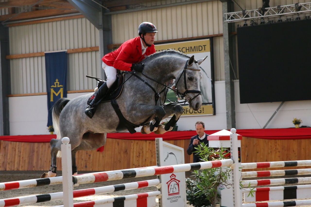 Springpferdeprüfungen und präsentierte seine ersten Fohlen, die deutlich vom Vater geprägt waren und mehrfach prämiert wurden. Das Beste aus Holstein und Westfalen sowie anglo-normannische Elemente sind hier die beherrschenden Faktoren des Pedigrees.