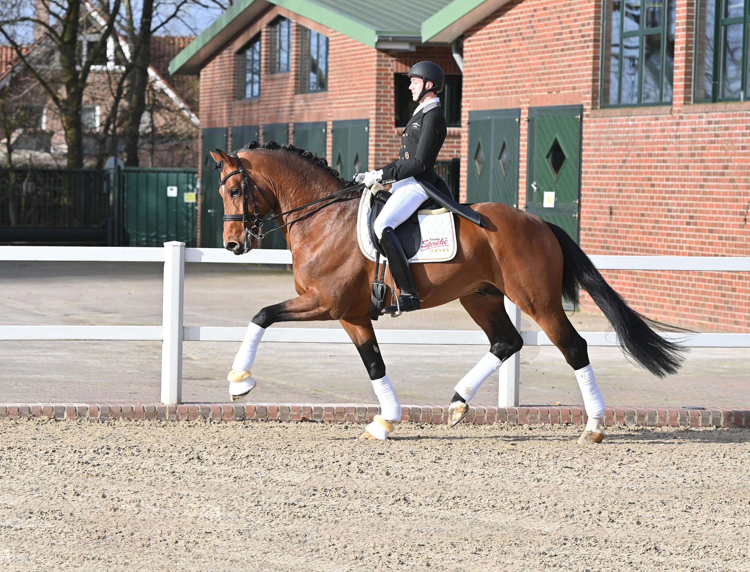 Von Sabine Rueben sportlich gefördert, startete Erdinger 2019 durch. Erste internationale Siege mit Höchstnoten und ein Sieg in einer Qualifikation zum Bundeschampionat stehen in der Vita des jetzt achtjährigen Musterschülers, der in aller Ruhe auf den Grand Prix vorbereitet wird.