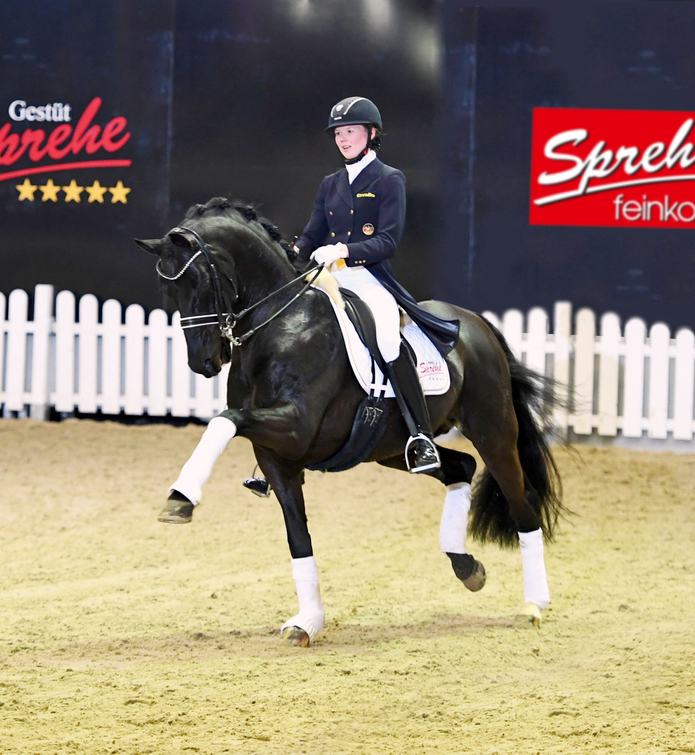Vom Geheimtipp zum Hauptvererber! In den letzten Jahren gelangen dem großformatigen und faszinierend aufgemachten Fürst Wilhelm zahlreiche Schlagzeilen. Im Herbst 2014 wurden in Redefin die ersten beiden Söhne gekört, darunter der brillant typierte Reservesieger Fürst William HC, inzwischen hochdekoriert als Landesund Bundeschampion und 2020 als Achtjähriger unter dänischer Flagge bereits siegreich in Intermédiaire I. Der Fürst Wilhelm-Sohn Furtwängler war mit 135.000 Euro die gefeierte Preisspitze der 83. Herbst Elite-Auktion in Vechta und brilliert nun in Spanien in der schweren Klasse.