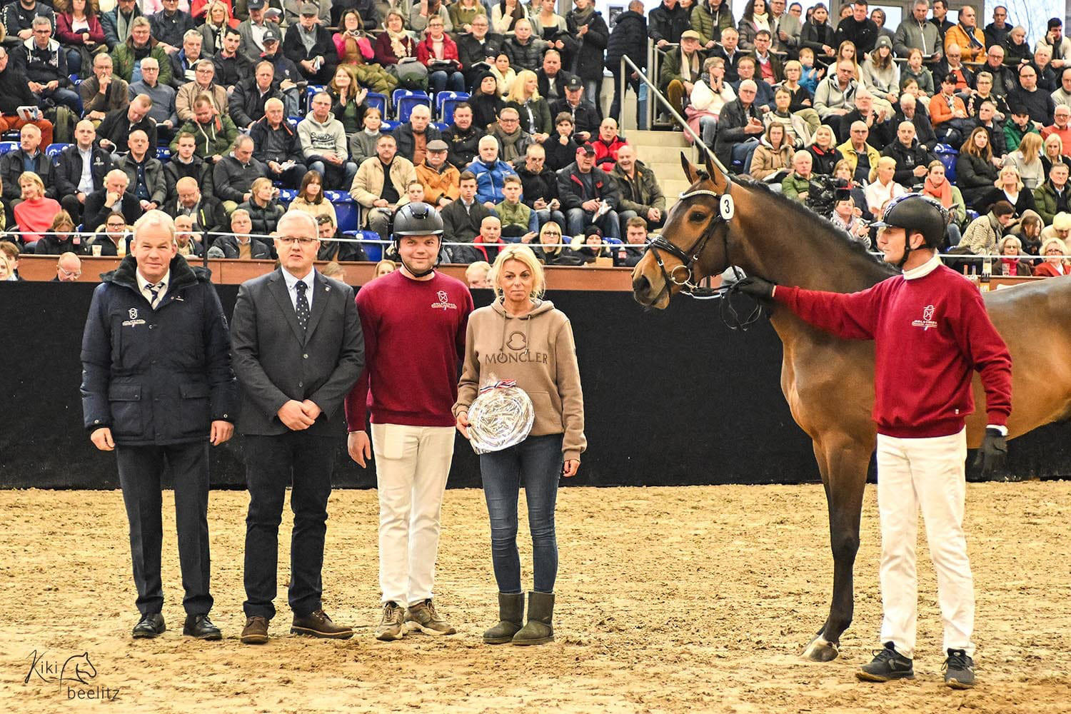 Der außergewöhnlich vermögende Vater Baggio ging 2019 erstmals in den Deckeinsatz. Er überzeugte mit den ersten Jahrgängen, wird sportlich von Tobias Meyer im internationalen Springsport vorgestellt und lieferte inzwischen 15 gekörte Söhne, darunter mehrere Prämien- und auch Siegerhengste.