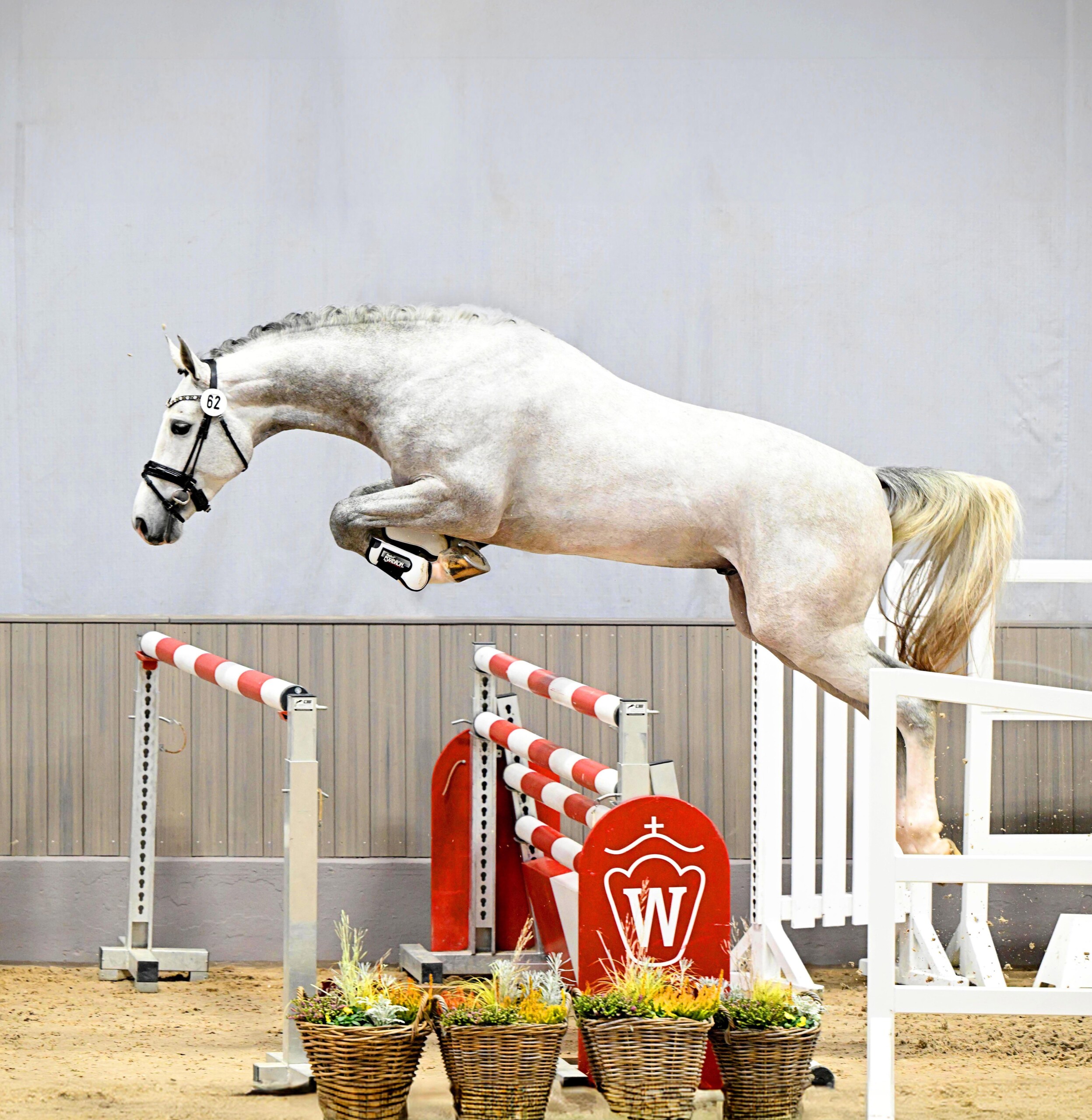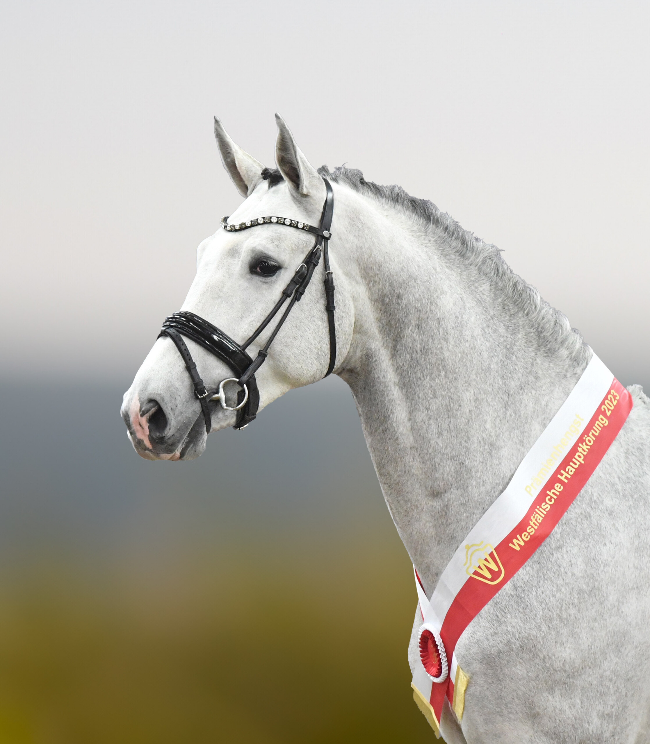 Großlinig, markant und doch so blutgeprägt und edel, kraftvoll in der Bewegung mit großem Hebel und viel Bergauf, das Freispringen von selten erlebter Explosivität mit geradezu grenzenlosem Vermögen – so verlief Baggio Whites Durchmarsch bei der Westfälischen Hauptkörung in Münster-Handorf 2023 bis zur Auszeichnung als Prämienhengst. Nach erfolgreichem Test bereiten wir ihn mit seinem unglaublichen Vermögen auf weitere Aufgaben vor. Das weckt Erinnerungen, denn genau so schickte sich auch der Vater Baggio vor wenigen Jahren von Neumünster aus an, die Sport- und Zuchtwelt für sich zu erobern. Baggio White ist einer von acht gekörten Söhnen aus den ersten beiden dafür in Frage kommenden Jahrgängen des Baggio.