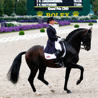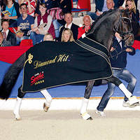 No less spectacular is Diamond Hit's sporting career: In 2002 he became Vice World Champion and Vice Bundeschampion of five-year old dressage horses. A year before, he was Oldenburg Vice Champion and Vice Bundeschampion of four-year old stallions. At the 2001' Bundeschampionat he was especially awarded by the Ministry of Agriculture for being the best licensed and performance-tested stallion. In 2005 he was proclaimed VTV-Dressage Stallion of the Year on the occasion of the Oldenburg Stallion Days. Then, he competed successfully up to international grand prix level. In 2012, Diamond Hit retired from sport in a stirring atmosphere during the Oldenburg Old Stallion Parade.